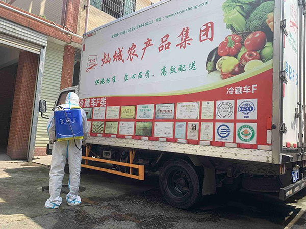 同時,為保障運輸安全,燦城農產品集團將每次出勤的車輛委托第三方進行全方位消毒,員工進行集中管理,對進入廠內的農產品進行快檢和定量檢測,保障農產品安全。