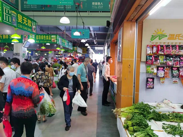 3月13日,深圳市疫情防控繼續(xù)加碼,當晚全市各店鋪出現不同程度排隊購菜、果蔬生鮮售罄的現象。龍華區(qū)地處深圳市中軸,外來務工人員、工業(yè)廠區(qū)集中分布,面對防疫工作的加緊,保障轄區(qū)居民農產品日常需求壓力更大。