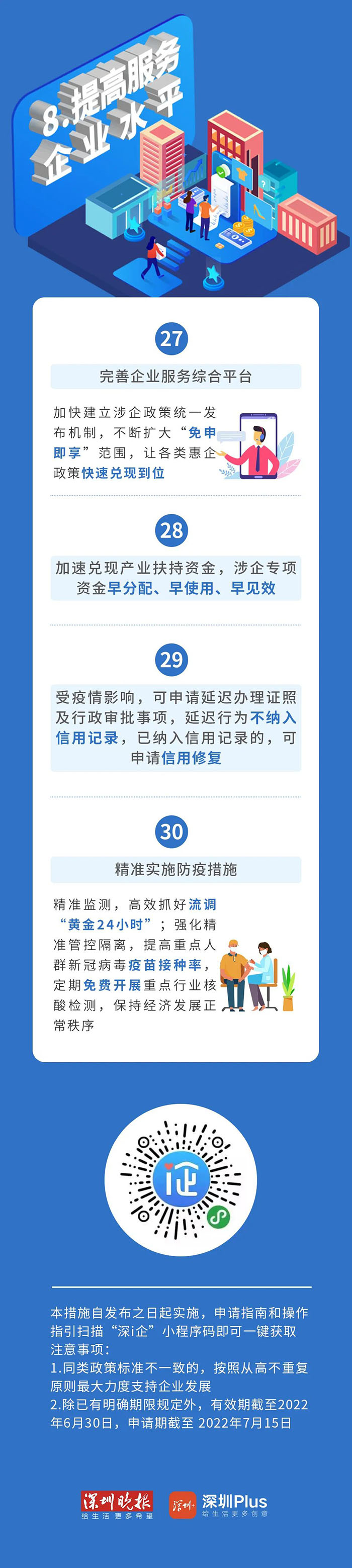 本政策由龍華區(qū)發(fā)展和改革局會同各牽頭單位負(fù)責(zé)解釋。對國家、省、市出臺的相關(guān)支持政策,從其要求全面落實(shí);同類政策區(qū)內(nèi)標(biāo)準(zhǔn)不一致的,按照從高不重復(fù)原則最大力度支持企業(yè)發(fā)展。本政策自發(fā)布之日起實(shí)施,除第九條防疫科技攻關(guān)支持措施有效期至2022年12月31日外,其余條款有效期至2022年8月31日,政策申請指南和操作指引由各牽頭單位另行加快制定并組織實(shí)施。